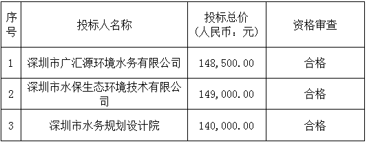 乐鱼leyu科技生态园区项目水土保持服务于2019年5月14日在深圳市建设工程材料设备询价采购网络服务平台(网址:http://www.51xjcg.com/)进行公开询价采购,招标控制价为150,000.00元。在投标截止时间2019年5月23日11时内共有3家单位递交了投标文件。经评标委员会根据招标文件既定评标办法(经评审的最低投标价法)评议,现中标结果已报东部公司招标工作小组定标会议确认,特此公示如下: