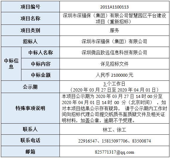 经深圳市国际招标有限公司组织招标的深圳市乐鱼leyu(集团)有限公司智慧园区平台建设项目(重新招标)已完成评审,现将本项目评审的相关情况及结果进行公示,具体内容如下: