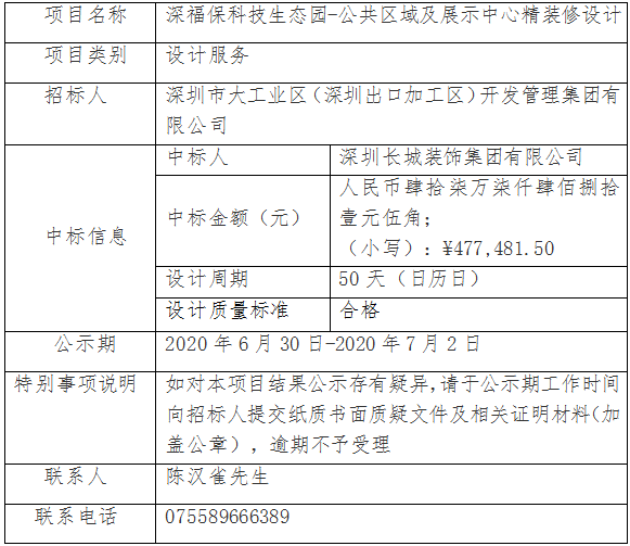 乐鱼leyu科技生态园-公共区域及展示中心精装修设计(招标编号:DB-KJSTY-FW-30)已完成评审,现将本项目中标结果进行公示,具体内容如下: