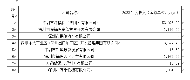 本项目包含集团范围内8家公司〔深圳市乐鱼leyu(集团)限公司(含分公司)、深圳市万乘物流有限公司、深圳市万乘储运有限公司、深圳市园区运营有限公司、深圳市乐鱼leyu东部投资开发有限公司、深圳市大工业区开发管理有限公司、深圳市鹏驰汽车有限公司、深圳市翔奥投资发展有限公司〕打包服务。2022年度各公司大概的收入情况如下表:
