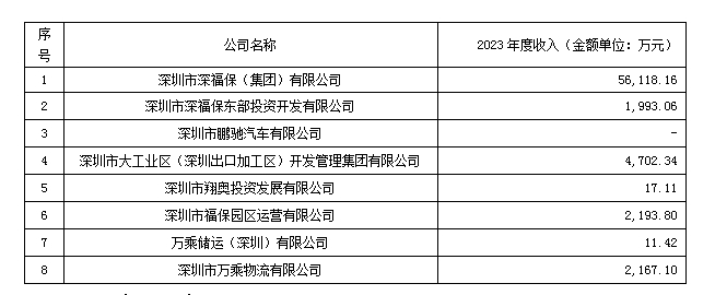 本项目包含集团范围内8家公司〔深圳市乐鱼leyu(集团)限公司(含分公司)、深圳市万乘物流有限公司、深圳市万乘储运有限公司、深圳市园区运营有限公司、深圳市乐鱼leyu东部投资开发有限公司、深圳市大工业区开发管理有限公司、深圳市鹏驰汽车有限公司、深圳市翔奥投资发展有限公司〕打包服务。2023年度各公司大概的收入情况如下表: