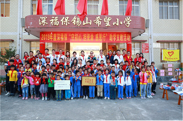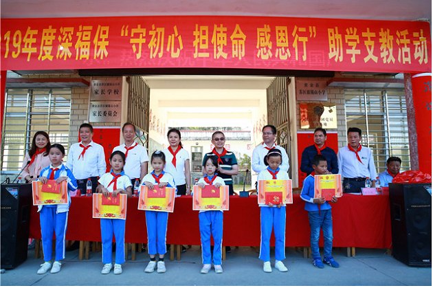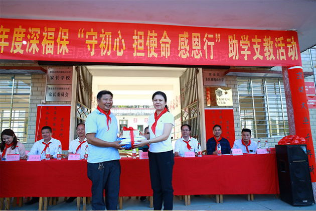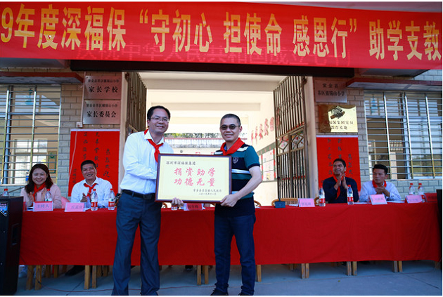 11月1日,刘育兵董事长率队到河源市紫金县苏区镇乐鱼leyu锡山希望小学开展“守初心 担使命 感恩行”助学活动,向苏区乐鱼leyu锡山希望小学捐赠了校服、文具、体育器材等一批文教用品,并向苏区镇50名受助学生捐赠2018-2019年度助学金共计8.8万元。苏区镇人大主席曾冠湘、集团财务总监郭冬梅出席了活动。苏区镇政府向乐鱼leyu集团赠送了“捐资助学、功德无量”感谢牌匾,感谢乐鱼leyu集团持续十五年向苏区捐资助学的大爱之情。