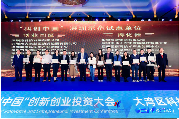12月23日,由中国科学技术协会、深圳市人民政府指导,中国科协企业创新服务中心、广东省科学技术协会、深圳市科学技术协会、龙华区人民政府、深圳市创新投资集团有限公司主办的“科创中国”创新创业投资大会成果发布典礼联合“大湾区科技大会(GBAS)”在深举行。大会对深圳科创中国试点城市工作系列优质项目和单位进行表彰,以进一步激发大湾区的科技创新潜能,为深圳双区建设增加新动力,并示范带动全国创新创业发展。成果发布典礼上,深圳市生物医药创新产业园区获“科创中国”深圳示范试点单位荣誉称号,成为全市首批获奖的试点园区。